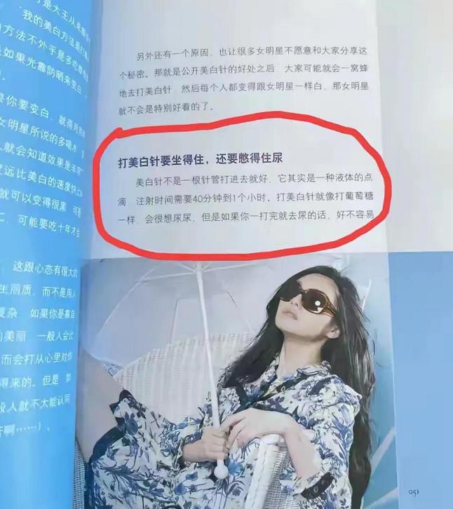 她还在自己的书里分享过打美白针要坐得住,还要憋得住尿。