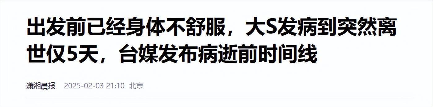 出发前已经身体不舒服,大S发病到突然离世仅5天,台媒发布病逝前时间线——潇湘晨报