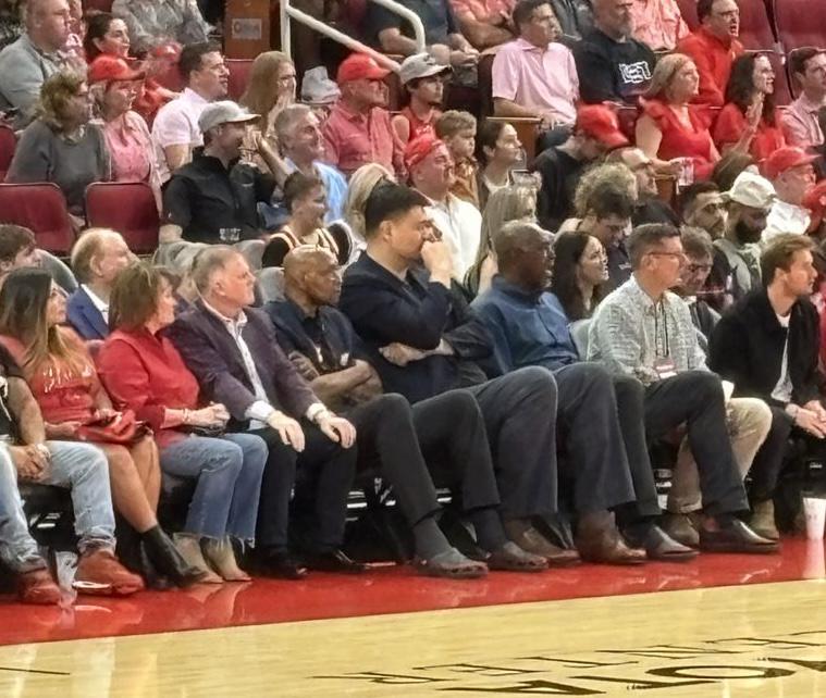 Matt Young在配文中幽默地写道:“姚明与奥拉朱旺现身火箭对阵活塞的场边观战。坐在姚明身旁的大梦竟显得像名得分后卫。”这句话迅速在网络上引发了热议,球迷们纷纷表示,两位传奇中锋的同框确实让人感受到了篮球运动的魅力与传承。