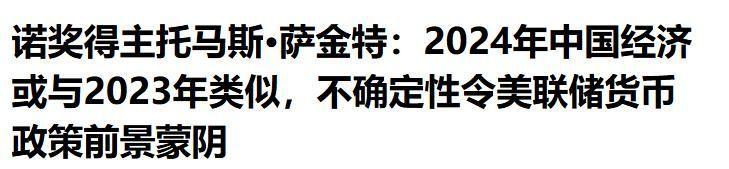 信息来源:诺奖得主托马斯·萨金特:2024年中国经济或与2023年类似,不确定性令美联储货币政策前景蒙阴