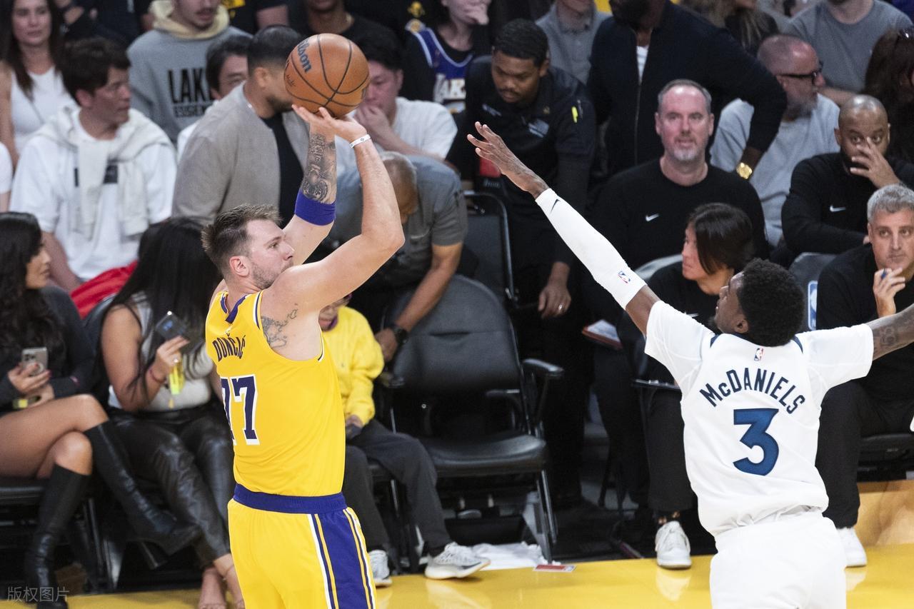 湖人主场大胜森林狼,东契奇首节火力全开,12投8中,三分7中4,罚球5中3,轰下23分。上半场14投9中,三分8中4,罚球12中10,砍下32分4篮板2助攻。全场出战35分钟,23投14中,三分12中5,罚球19中16,爆砍49分11篮板8助攻。