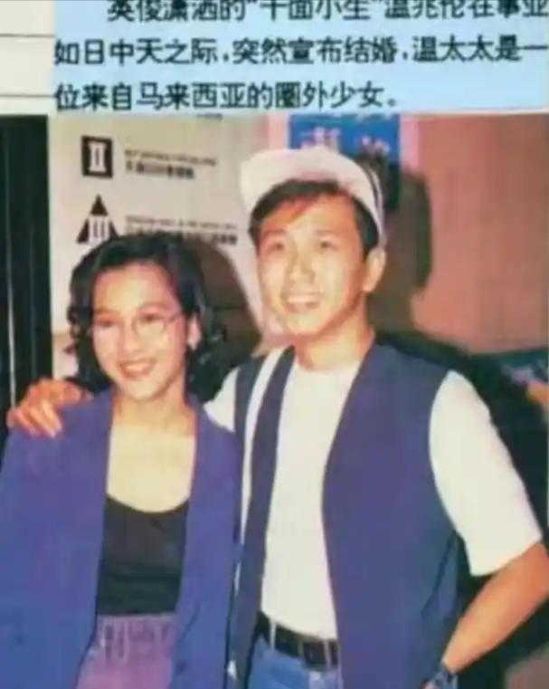 之后,温兆伦还和健美小姐何美婷谈过一段感情,最后在1989年和马来西亚籍港姐李美玲秘密结婚。
