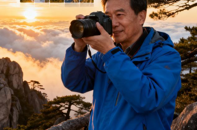除了下棋,我还迷上了旅游。以前上班没时间,现在有钱有闲,我报了个黄山夕阳红旅行团,又给自己置办了一身新冲锋衣和一个单反相机。