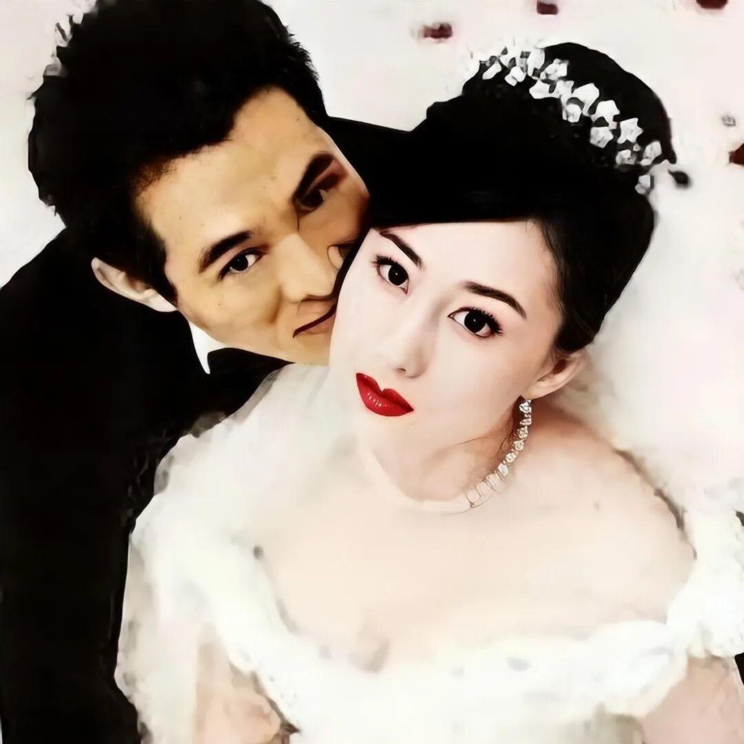 在一张利智与李连杰的婚纱照中,利智的表情同样显得凝重。从眼神中可以看出,她似乎并不开心。考虑到两人因戏生情,自由恋爱,并最终走到拍婚纱这一步,利智的这一表情确实令人费解。
