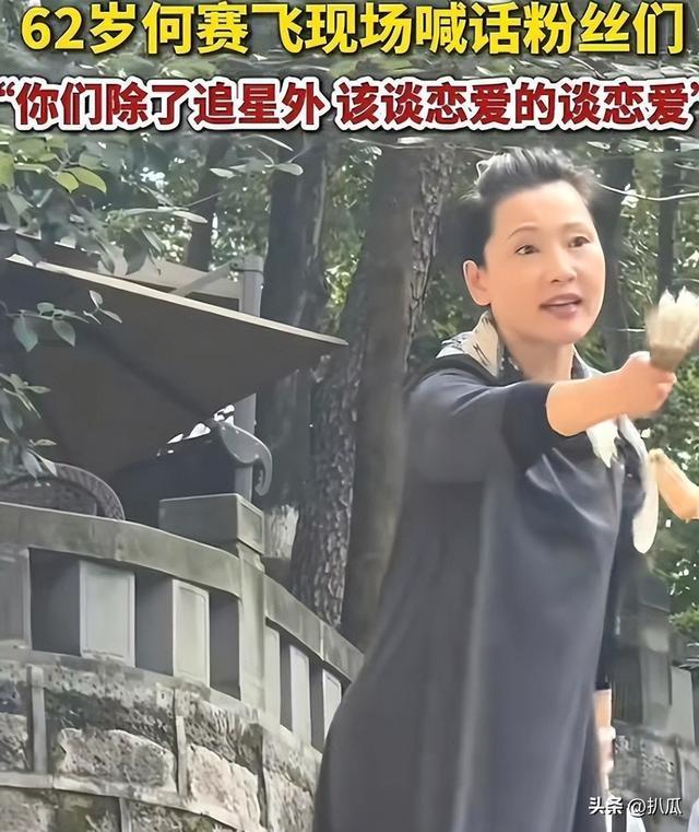 面对路过的影迷,何赛飞会提起扇子催促他们“该谈恋爱的谈恋爱,不要只学着追星”。