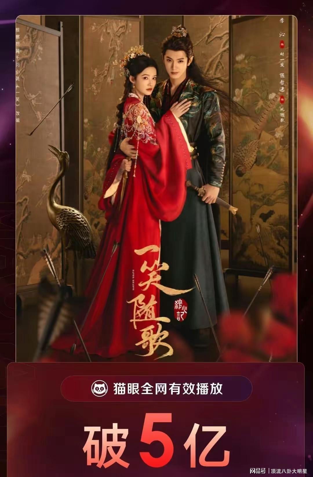 《一笑随歌》打破“古偶三日定生死”定律,以“低开疯走”的逆袭轨迹,陈哲远因这部剧狂涨粉30万+,李沁新增6个代言;凤随歌角色单日热度破 ,爱奇艺站内最高热度峰值达9158。灯塔集均播放量:1576.6万,累计播放量6.1亿。