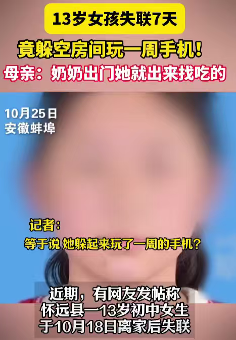 近日,安徽发生了一起13岁女孩失联7日的案件,引发了广泛关注。家长焦急万分,全城搜寻无果后,最终在奶奶家的空房内找到了孩子,这一结果令人意外。