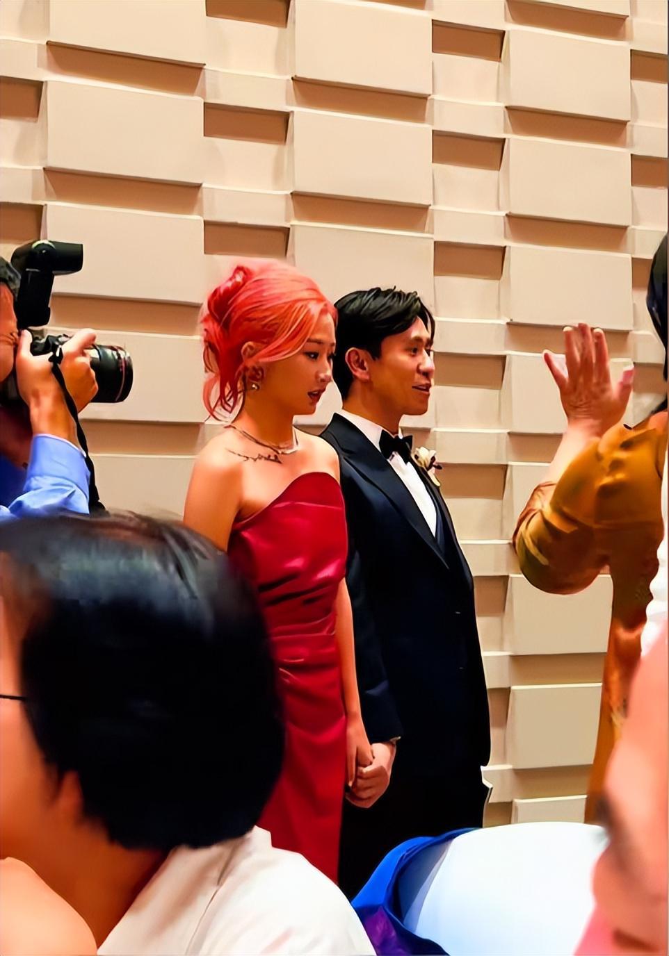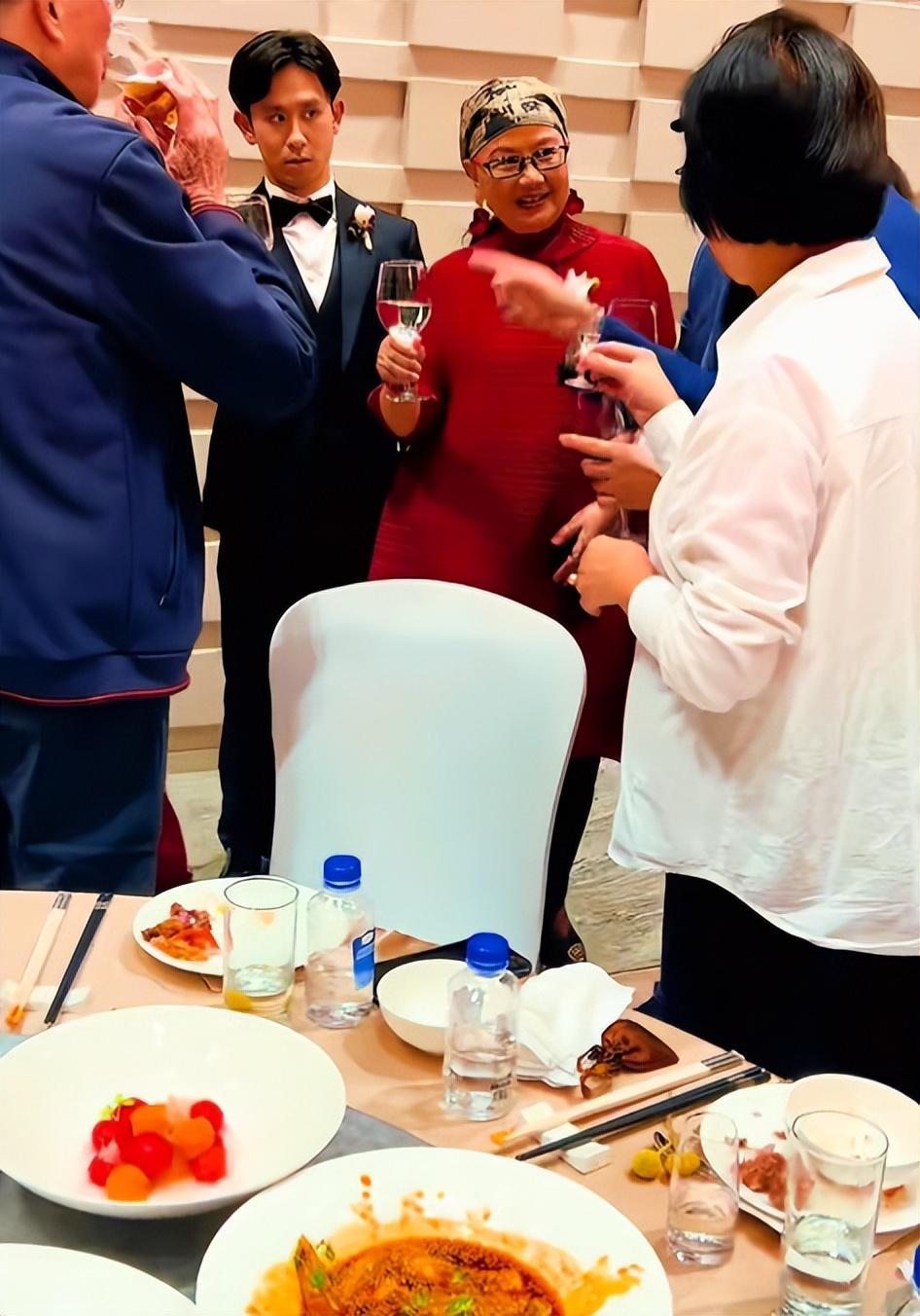 刘欢与妻子卢璐的着装形成鲜明对比:刘欢以条纹西装搭配黑色长裤,简约低调;卢璐则身着红色礼服,喜庆氛围拉满。婚礼上,卢璐与女婿一同向宾客敬酒,笑容藏不住喜悦;而刘欢虽强颜欢笑,却难掩对女儿出嫁的不舍。网友注意到,新郎父亲全程陪伴刘欢,尽显地主之谊。