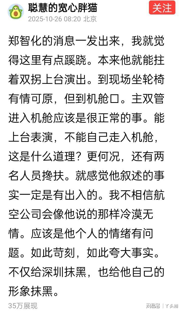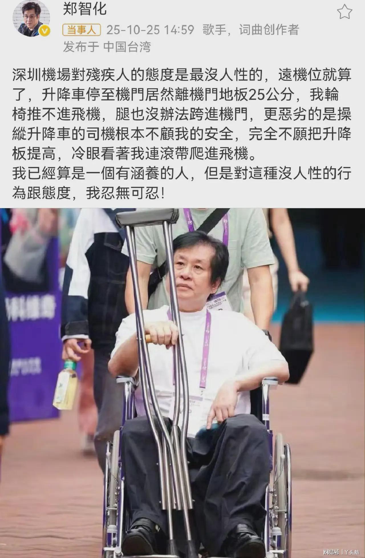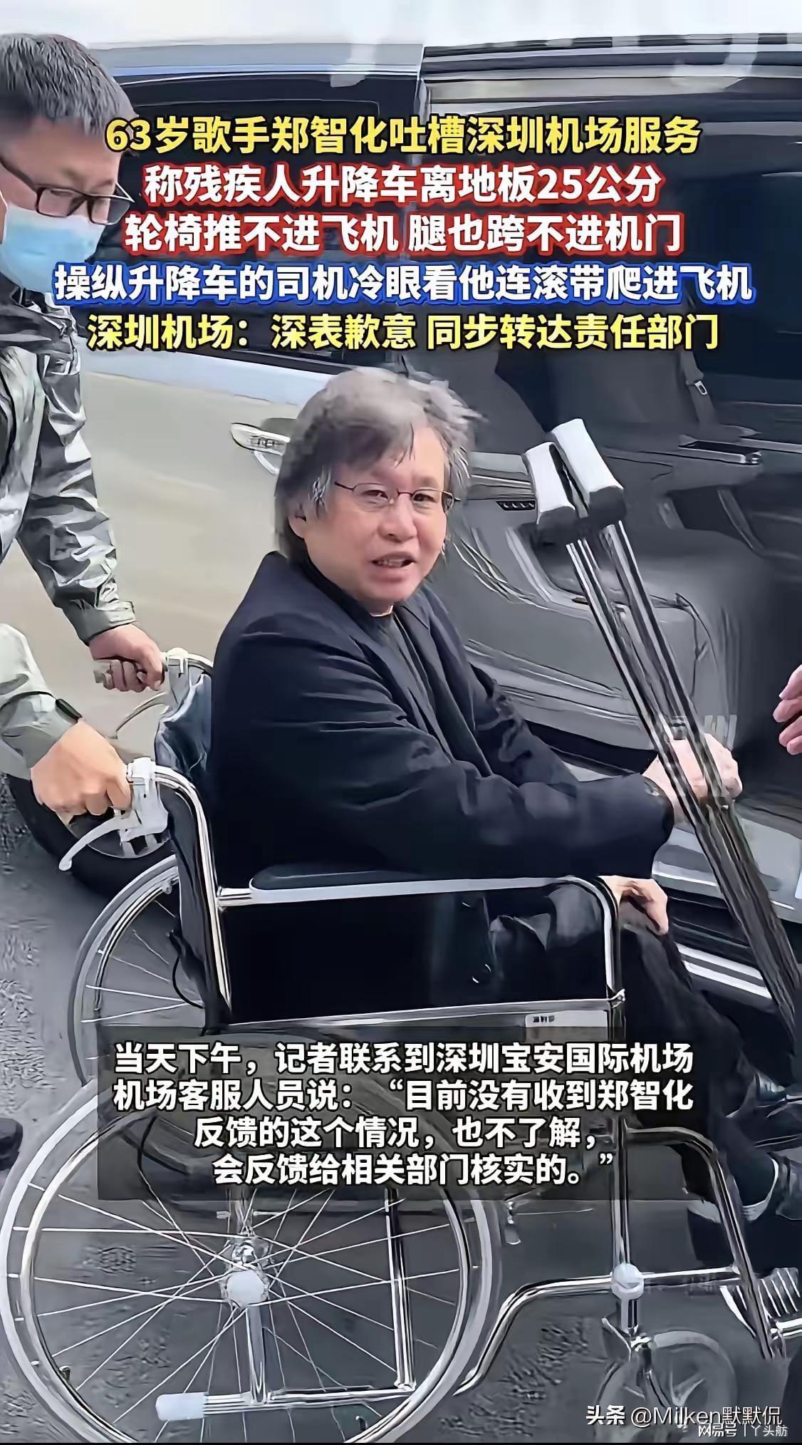 固然,深圳机场在服务残障人士方面确实存在需要提升和完善的地方。但作为一个“名人”,反映问题时措辞更应准确,叙事更要客观真实。事情发生后,郑智化没有直接向机场有关部门投诉,而是在社交媒体上发文且用词过于夸张、描述不够全面,这种做法令人难以理解。