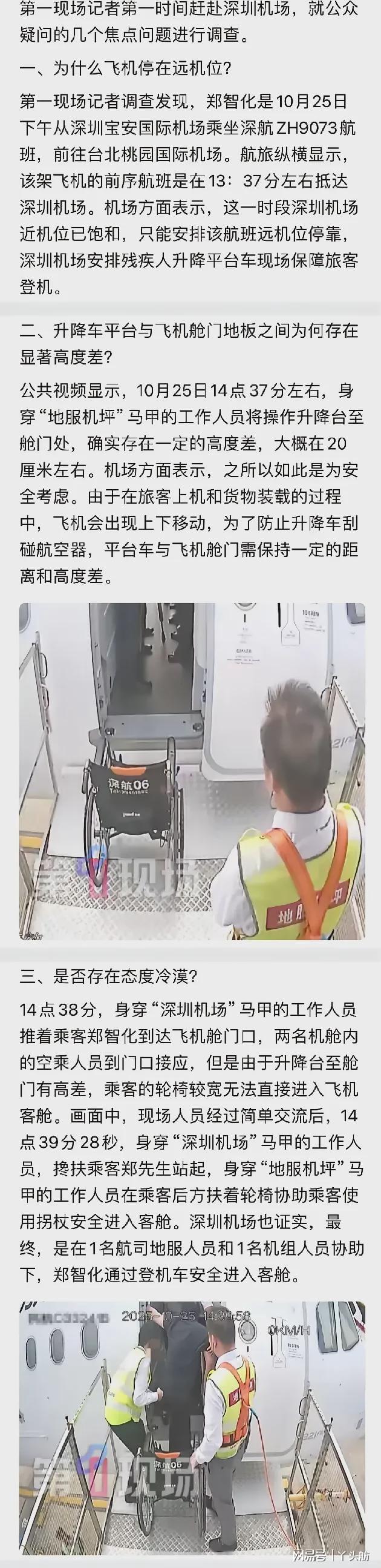 10月25日下午,郑智化从深圳宝安国际机场乘坐飞机前往台北桃园国际机场。事后,他在社交媒体上发文,吐槽深圳机场服务差,称自己“连滚带爬”地登上了飞机。对此,深圳航空在道歉的同时,也公布了全程为其服务的监控视频。