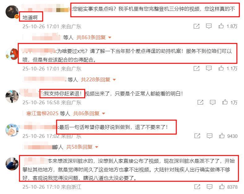 长文发布后,评论区几乎一边倒地批评郑智化。网友指责他“泼脏水”“抹黑大陆机场”,甚至喊话“赶紧退圈”“道歉”。有网友解释安检严格源于历史安全事件,认为批评服务可以,但应配合必要流程;另有网友表示无法理解他“一杆子打翻所有机场”的行为。