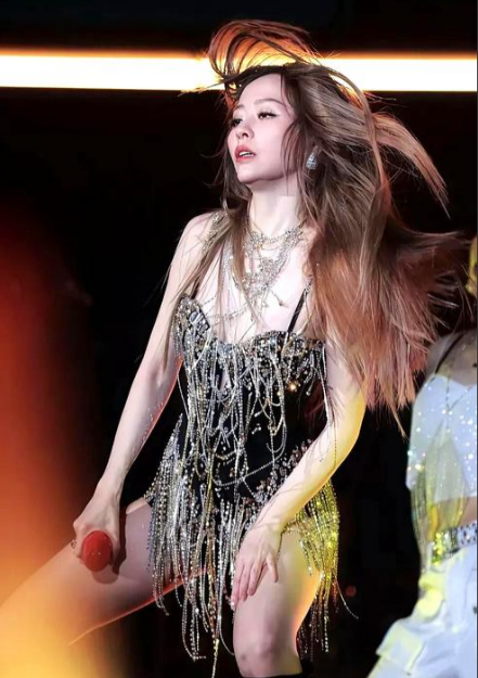 2025 年 7 月的深圳演唱会,她唱《九万字》那场,穿了条玫红色透视褶皱短裙,还配了个浮夸墨镜。有人直接吐槽“像女网红”“太擦边”。