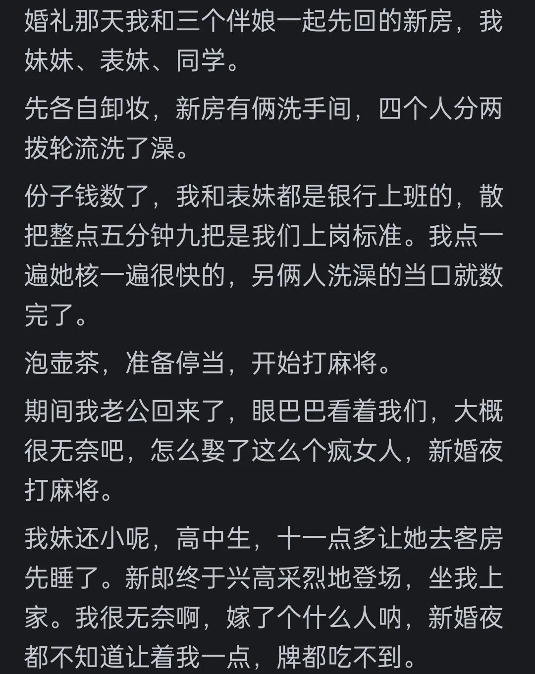 看完网友的这些精彩分享,你是不是也有一肚子的话想说呢?欢迎大家在评论区留言,分享你的新婚之夜经历或者看法哦!