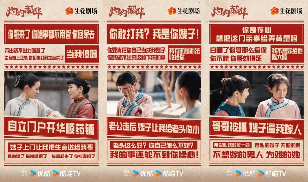 《灼灼韶华》对于题材定位稀缺性的探索为剧集内容能够被大众市场感知,打下了区别于当下市面上其他年代剧的差异化基础。“寡妇”“再嫁”是女主角褚韶华的叙事起点,这一设定在国产剧特别是民国剧中相对稀缺。它打破了传统剧集里较为常见的“未婚少女”或“困于一段婚姻”的女性主角情感模式,并且选择直接将人物置于更复杂、更具戏剧张力的世俗偏见与生存困境中。同时,“中药商贾”这一细分垂类行业题材的新鲜感也作为剧集题材定位稀缺性的一环,为剧集破局提供了有效加持。
