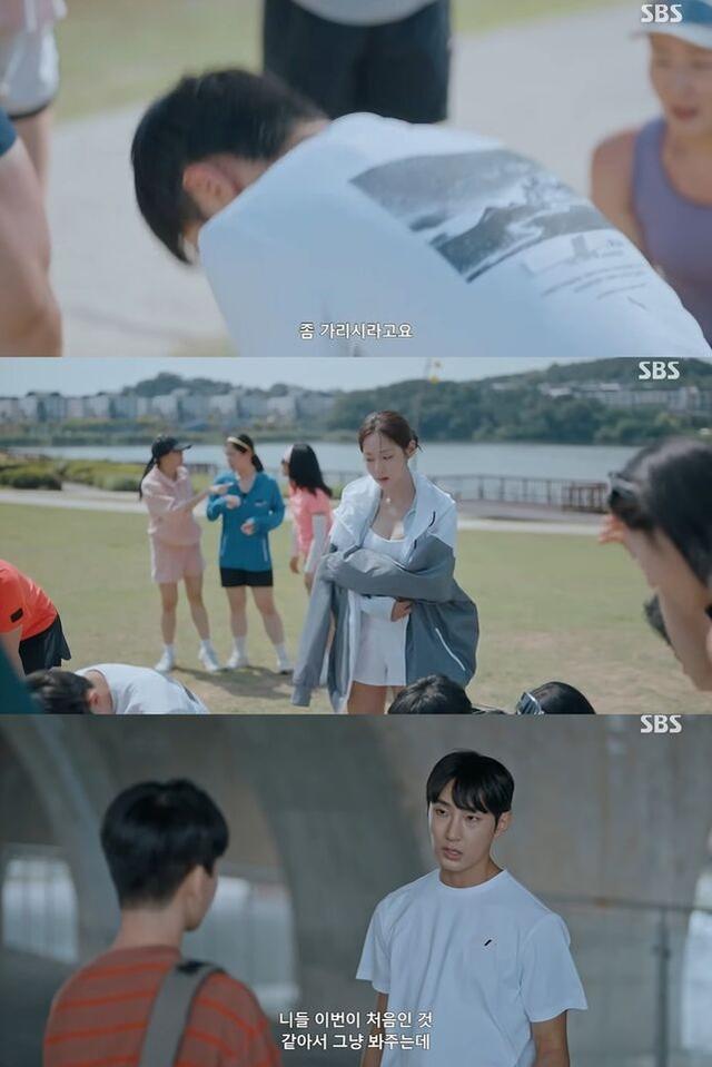 在剧中,尹珍敬(申瑟琪饰)作为家医科医师,在公园遇到昏倒的女性时,毫不犹豫地上前进行CPR急救。然而,在围观的路人中,却有一名男子趁机用手机偷拍尹珍敬弯腰时露出的乳沟。这时,在一旁的白商贤(裴奈拏饰)发现后,虽然脱下外套并试图将尹珍敬推开,但他的处理方式却让观众大跌眼镜。