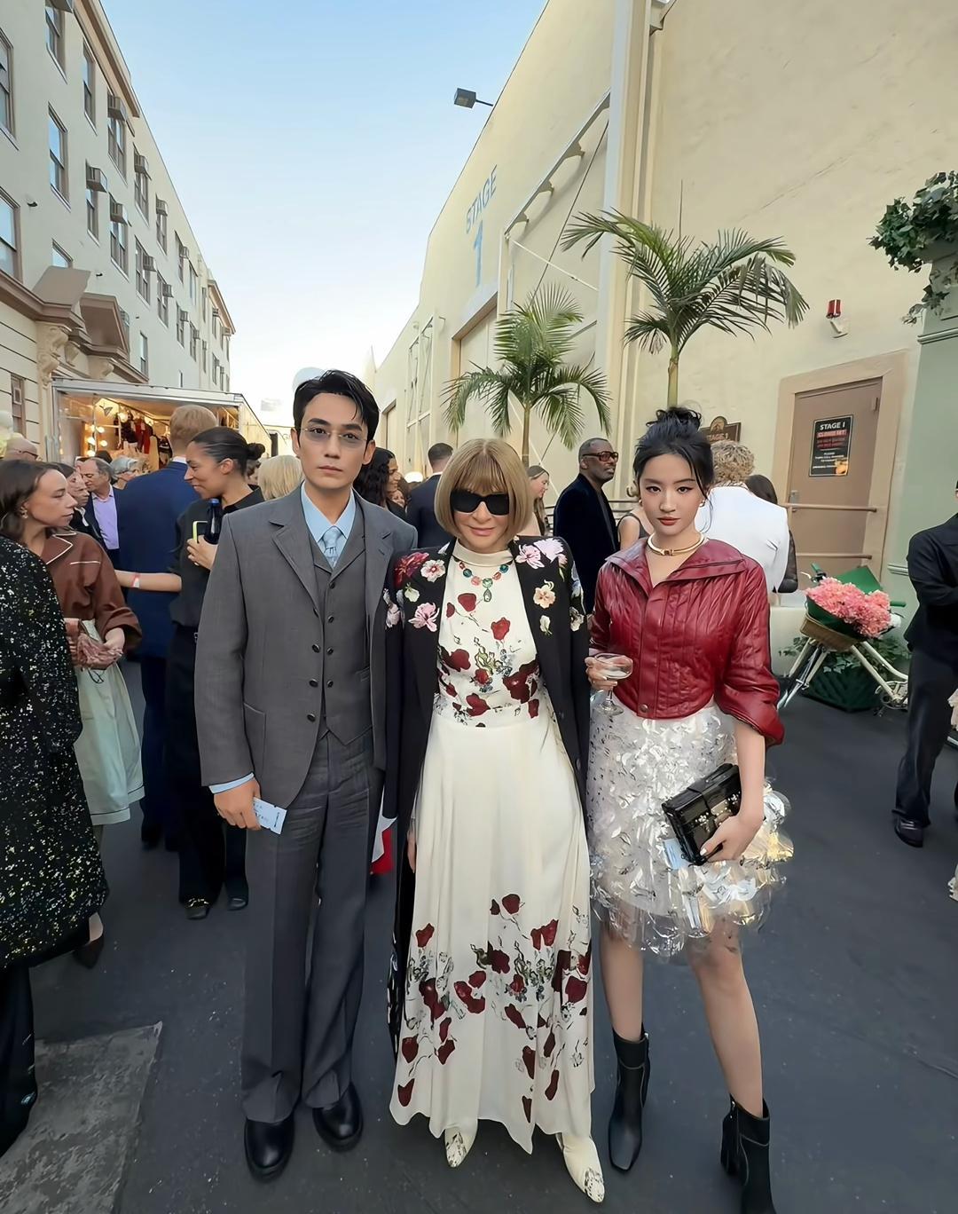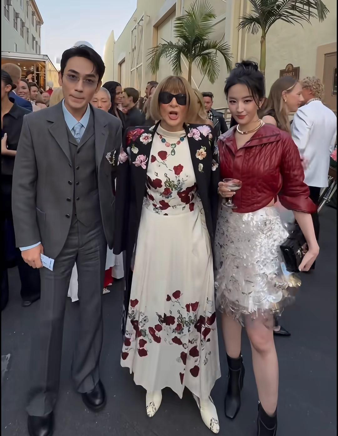 在活动现场,刘亦菲与朱一龙还与《Vogue》杂志的总主编安娜温图尔合影留念。在一众国外面孔中,两人的高颜值依然抢眼,成为了合影中的亮点。