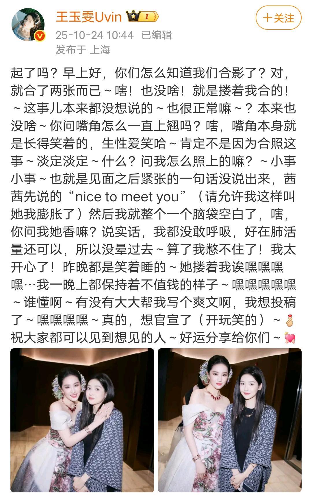 不仅如此,女星王玉雯因为与刘亦菲合影两张,也直接发文炫耀了老半天,甚至有些语无伦次。由此可见,刘亦菲的美丽确实具有非凡的魅力。