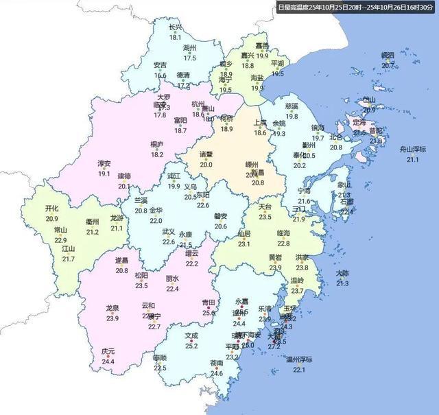 东南沿海地区:23℃-25℃;