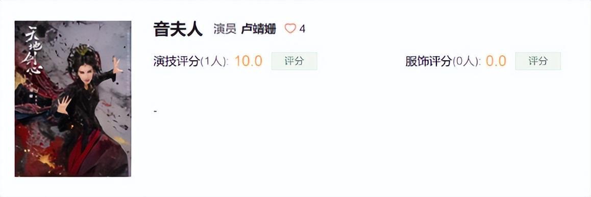 卢靖姗在剧中饰演女反派“音夫人”,这是她首次出演古装剧。她并没有用过于爆发的演技来饰演这位反派,而是在处置手下小妖时漫不经心地缠绕着手中的头发,一股魅意与狠意扑面而来。在无人的时候,音夫人也会露出不为人知的一面,对着爱人留下的遗物满脸温柔与怀念。卢靖姗的演技惊艳四座,她以满分的成绩获得了观众和评委的高度认可。