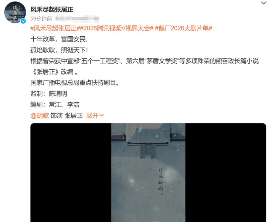 鹅厂“V视界大会”发布了2026年大剧片单,其中官宣的不少大剧让人按捺不住激动的心情。