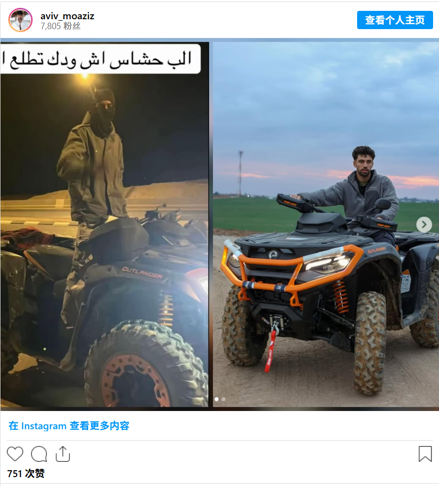 莫沙夫克拉希姆的居民、以色列国防军第226伞兵旅的预备役军人阿维夫·莫阿齐兹(Aviv Moaziz)向媒体讲述了这一事件的经过。他表示,在战争中期,他因父亲患癌而从预备役中解脱出来,在家帮忙。然而,赎罪日那天,他回家后却发现全地形车被盗。经过漫长而艰苦的搜索,他们最终在TikTok视频上看到了被盗的车子,上面还有他所有的识别标记。