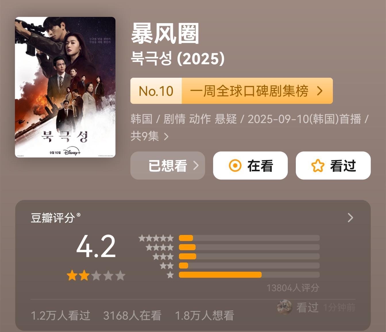 在《暴风圈》中,全智贤饰演前联合国大使“徐闻柱”,与姜栋元饰演的特工共同调查总统候选人枪杀案。该剧自立项以来便备受关注,首播三集后豆瓣开分7.1,不少观众因对全智贤的喜爱而打出高分。然而,随着剧情推进,剧中多处涉嫌辱华的设定逐渐暴露,引发网友愤怒。