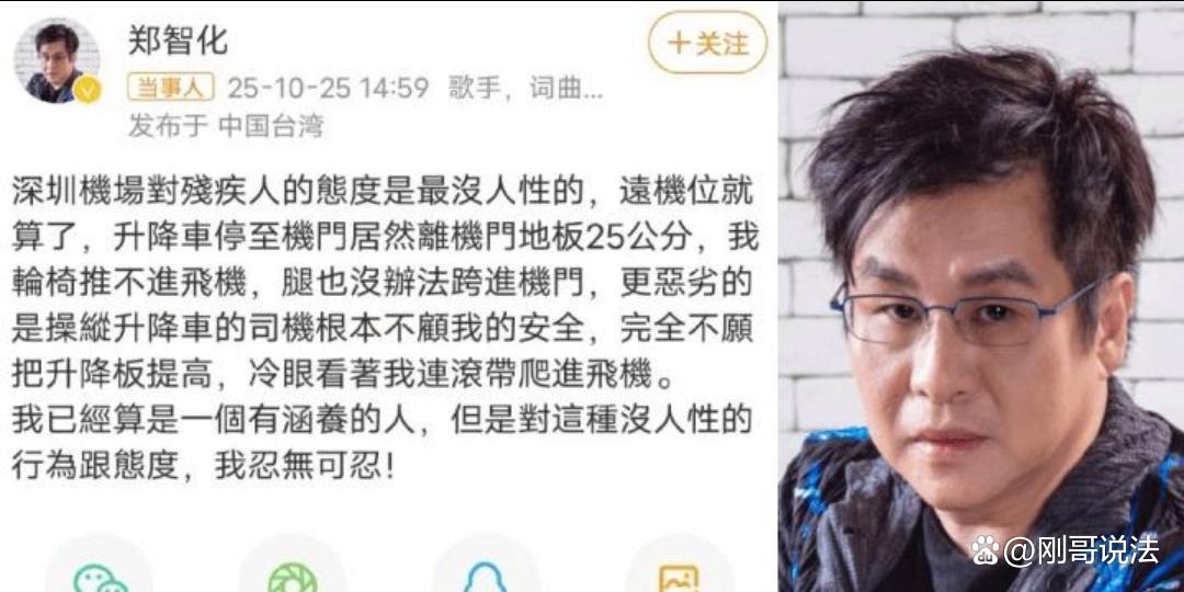 深圳机场的工作人员在郑智化登机过程中提供了诸多便利,包括两位小哥费力搀扶他登机,以及空姐热情接过行李。然而,这些善意举动在郑智化的描述中却被完全忽略。这种“抓重点”的舆论技巧,虽然展现了他作为老牌艺人的“两把刷子”,但刷出的却是对大陆公共服务的恶意抹黑。