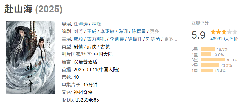 而现在的成毅,即使他前面那部《赴山海》的成绩不尽人意;