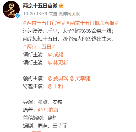 但他依然能在刚宣的新剧《两京十五日》里面拿下一番。