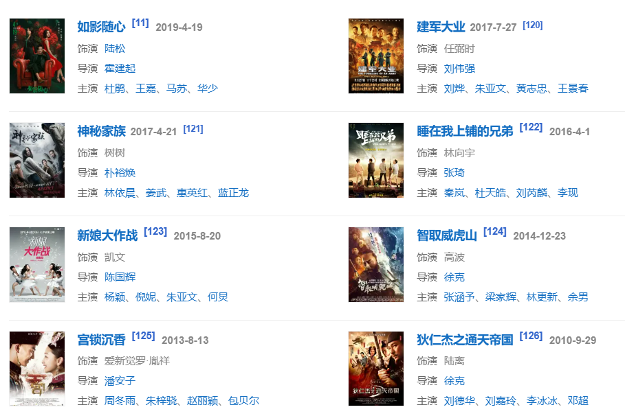 演的是徐克的《智取威虎山》和尔冬升的《三少爷的剑》,简直就是被当做85第一生来培养的。