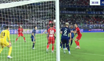 比赛第12分钟,河南队获得左侧任意球机会。王上源主罚的皮球精准找到埋伏在禁区的阿奇姆彭,后者头球冲顶破门。然而助理裁判第一时间举旗示意越位,河南队进球被判无效。