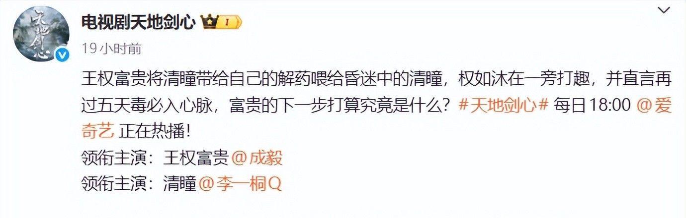 微博热搜话题:#成毅演技# #天地剑心差评#