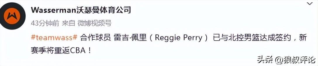 北京时间10月27日,知名体育经纪公司“沃瑟曼体育”正式发布公告,旗下合作球员雷吉·佩里(Reggie Perry)已与北控男篮达成签约协议,这位00后外援将在2025-2026赛季重返CBA联赛。