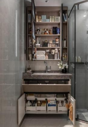 厨房直接拉满:烟机、灶具是标配,还加了蒸烤一体机,127㎡以上户型再送洗碗机,连前置+末端净水都装好了,喝口水都放心;