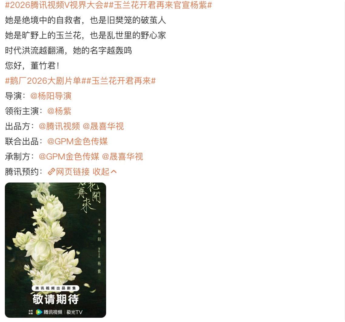2025年腾讯V视界大会堪称国产剧领域的"神仙盛宴",各大影视公司纷纷亮出王牌项目,从《雪中悍刀行2》启动到杨紫新剧官宣,从《唐朝诡事录3》到《枭起青壤》,多部重量级作品引发全网热议。