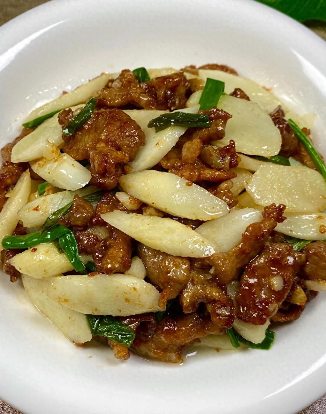 肉片选猪里脊肉,切成薄片后用生抽、少许淀粉抓匀,再淋一勺食用油拌匀,这样炒时肉片不易散,还能锁住水分。热锅倒油,爆香姜片和蒜末后,先炒肉片至变色盛出,再炒山药片两分钟,最后将肉片倒回锅中,加少许盐和白糖提鲜,翻炒均匀即可出锅。
