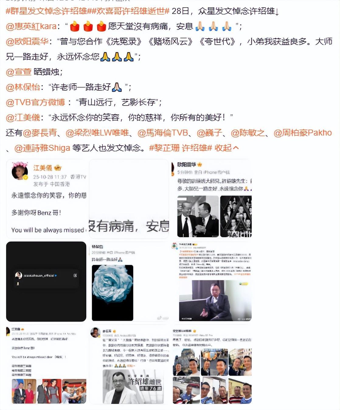 当许绍雄去世的消息官宣,娱乐圈众人立即发文悼念。