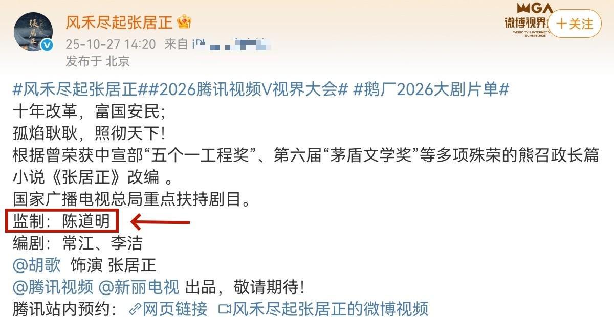 而这部剧的监制同样是陈道明,这是他与张若昀继《庆余年》演父子后的再度合作。