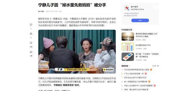 而到了宁静这里,她却爆料自己的儿子曾因为一道千古难题“妈妈和老婆掉水里,应该先救谁”,而和女友分手。