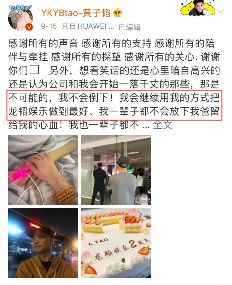 2018年,黄忠东成立龙韬娱乐,正式接手黄子韬的全部业务。这意味着,黄子韬不再是受人调配的明星,而是背靠资本的公子哥。也是在这一年,龙韬娱乐签下徐艺洋。齿轮开始转动,黄子韬一家人的命运在此交汇。