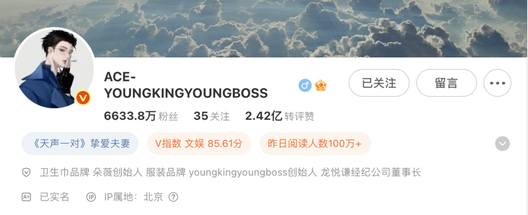 随后改过几次莫名其妙的名字后,2021年,他再次把志向写上微博,“ACE-YOUNGKINGYOUNGBOSS”(全能选手-年轻的王年轻的老板)。