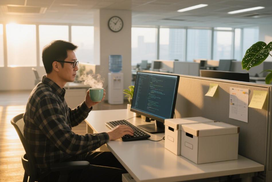 他泡了杯茶,坐在工位上,开始整理自己的代码。三年来写的每一行代码,他都仔细地做了注释,打包上传到服务器。