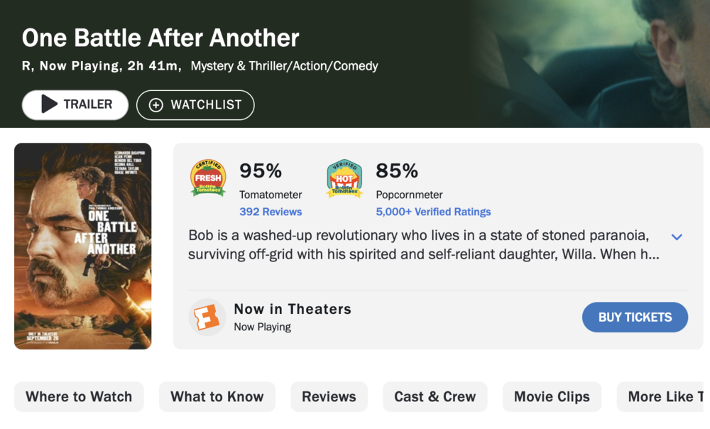 《一战再战》上映的时机太不巧了,恰逢查理·柯克枪击身亡。即便这部电影拍摄时特朗普还未实现二进宫,上映后仍然显得格外讽刺。