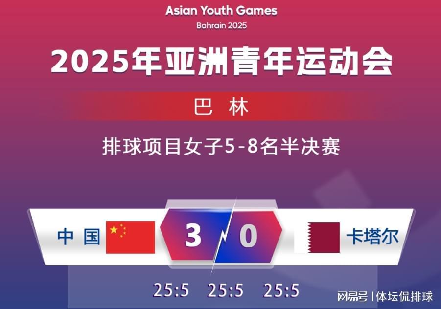 北京时间10月27日,在2025年亚洲青年运动会女排5-8名半决赛中,中国U16女排以3-0(25-5,25-12,25-8)横扫卡塔尔队。这场看似酣畅淋漓的胜利背后,实则暗藏多重结构性隐忧。作为赛事最年轻队伍(平均年龄比对手小2-3岁),这支青年军虽以第五名收官,但三连败后的"荣誉之战"更像一面"照妖镜",暴露出梯队建设的深层痛点。