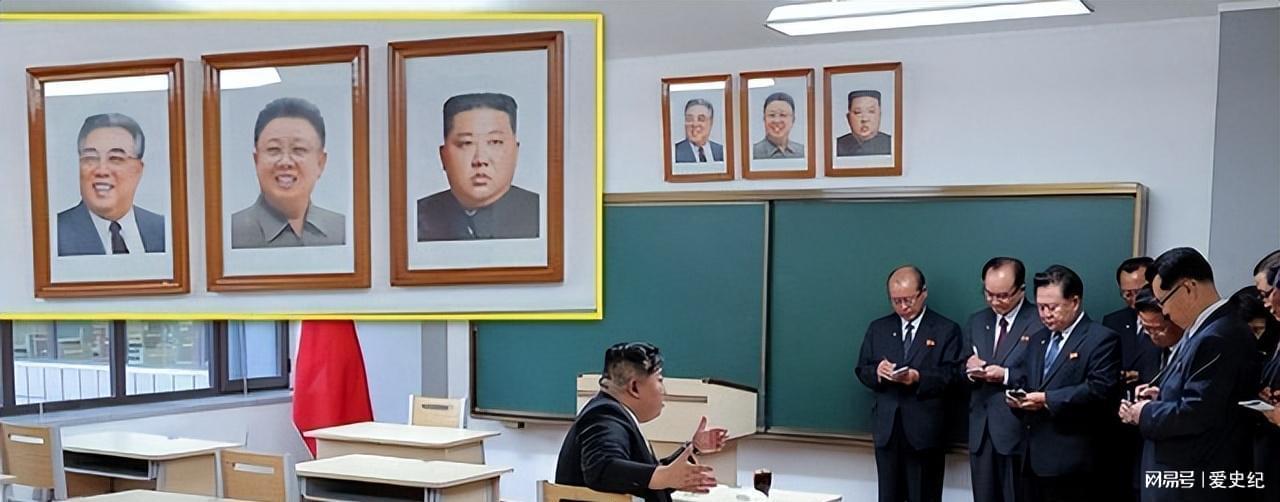 更夸张的是,在24年朝鲜新党员培训学校落成的时候,金正恩的肖像是和金日成、金正日的肖像挂在一起的,不仅如此,他的肖像尺寸还是三个里面最大的那个,还是在中间放着。