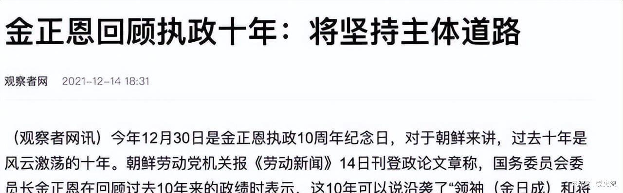 信源:观察者网 金正恩回顾执政十年:将坚持主体道路