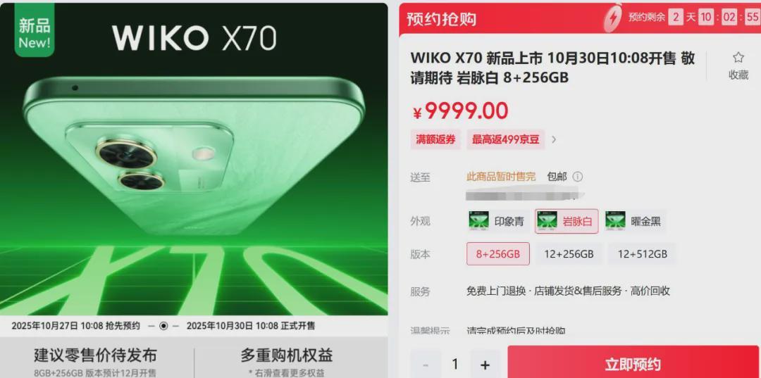 据了解,官方还将昆仑玻璃和一键北斗卫星作为核心卖点,进一步提升手机的耐摔抗刮性。价格方面,某东自营店显示WIKO X70有8G + 256G、12G + 256G、12G + 512G三款存储型号可选,颜色包括印象青、岩脉白、曜金黑等时尚配色。