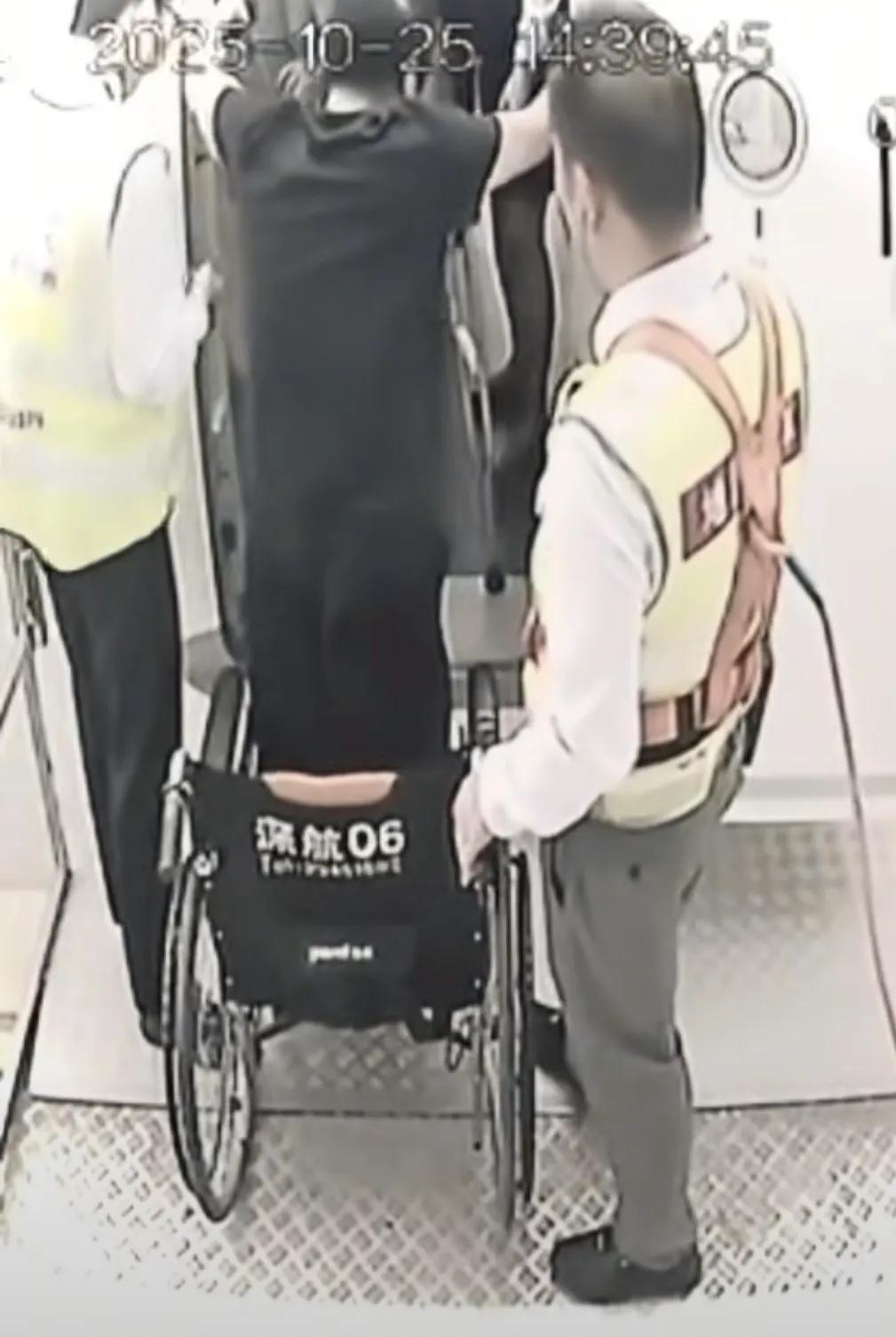 但事情并未就此平息。深圳机场随后曝光了郑智化登机的完整监控视频,虽然并未直接解释,但视频内容似乎意在证明机场工作人员的清白。监控中显示,两名男性工作人员推着郑智化的轮椅到达升降梯与飞机的连接处,尽管升降梯与飞机舱门之间存在高度差,但工作人员并未放任不管,而是积极协助。