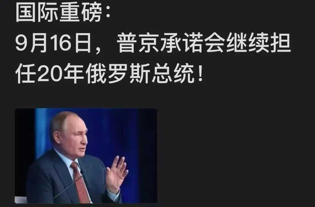 近日,一则'普京承诺再任20年总统'的消息在网络引发热议。但需特别指出的是,该信息尚未得到官方证实,其来源和真实性均存疑。