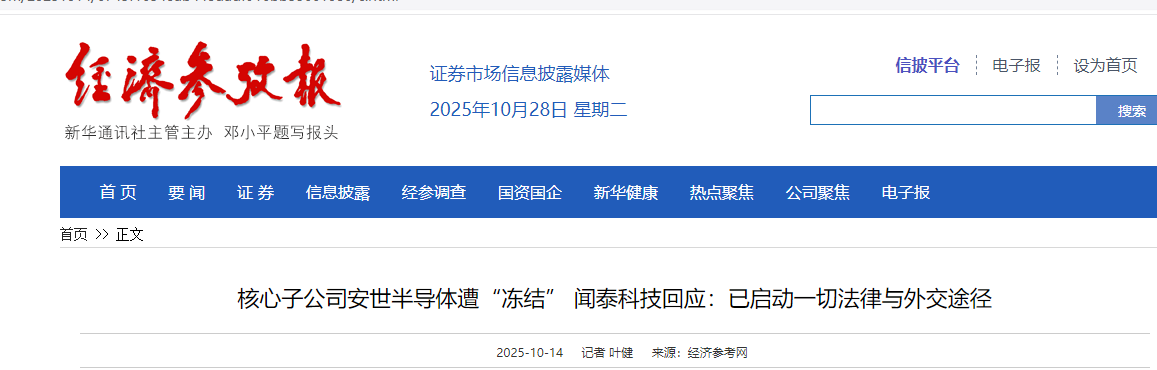 核心子公司安世半导体遭“冻结”闻泰科技回应:已启动一切法律与外交途径